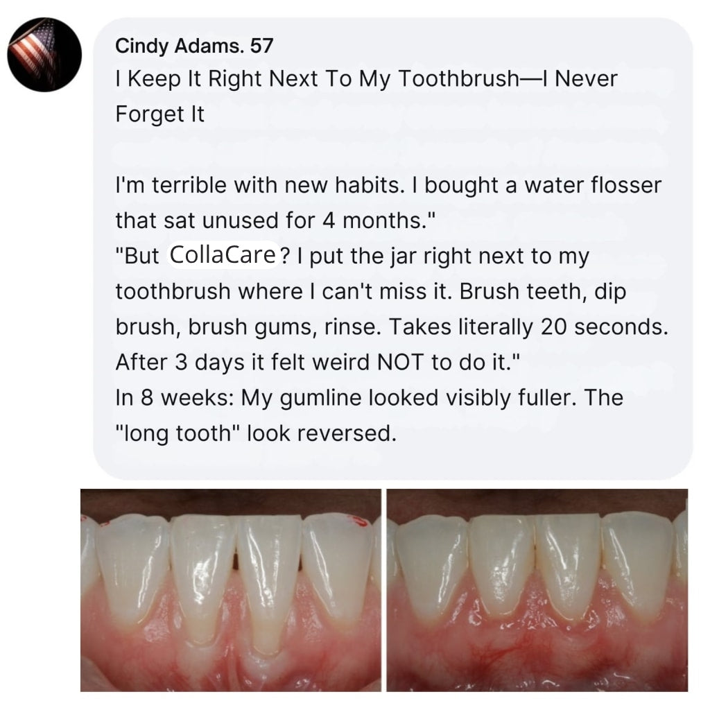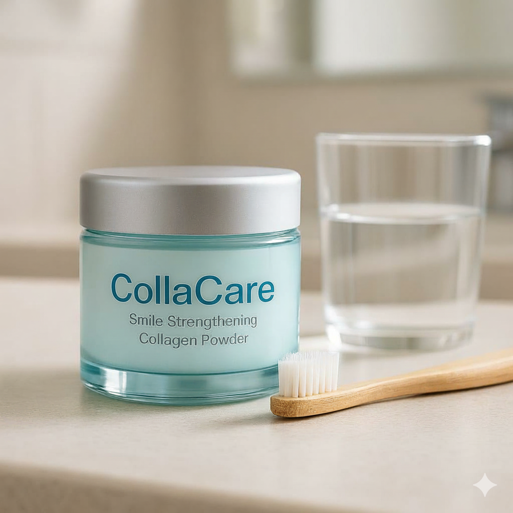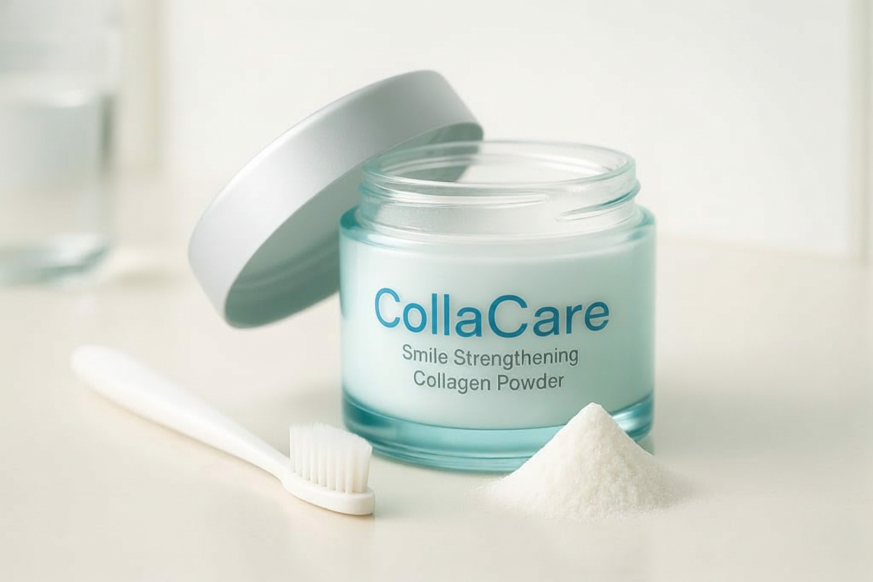 CollaCare™ is a smile-strengthening collagen powder you brush directly into your gums and enamel.