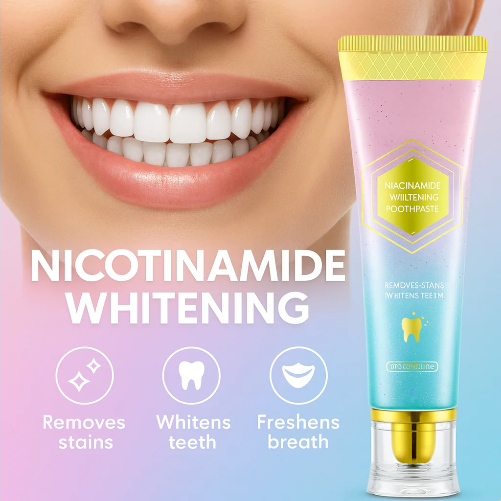 Mr. Smile Whitening Toothpaste is designed to erase years of stains while protecting your gums and strengthening enamel. Powered by niacinamide, it works gently but effectively to give you a noticeably whiter smile and fresh breath you can be confident in.